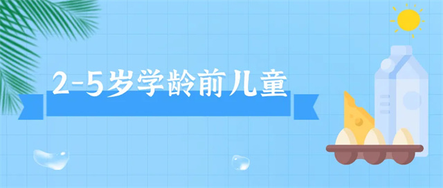 (4)奶、大豆及坚果类食物:平均每天有2种,每周5种以上。奶蛋类是优质蛋白质和钙的最佳来源,优质蛋白质是维持生长发育和健康体质的重要营养物质。学龄前儿童每日需摄入奶类300~500毫升或相当量的奶制品,可选择液态奶、酸奶、奶酪等无添加糖的奶制品;每日一个鸡蛋,最好选择水煮蛋或蒸蛋。2-5岁儿童新陈代谢旺盛、活动量大、出汗多,需要及时补充水分,每天饮水量需600~800毫升。