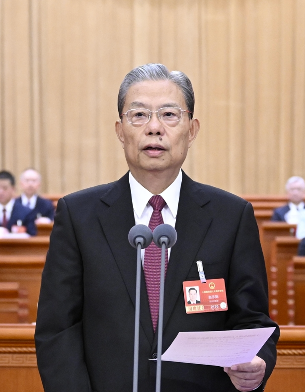 3月5日上午,第十四届全国人民代表大会第四次会议在北京人民大会堂开幕。赵乐际主持开幕会。新华社记者 申宏 摄