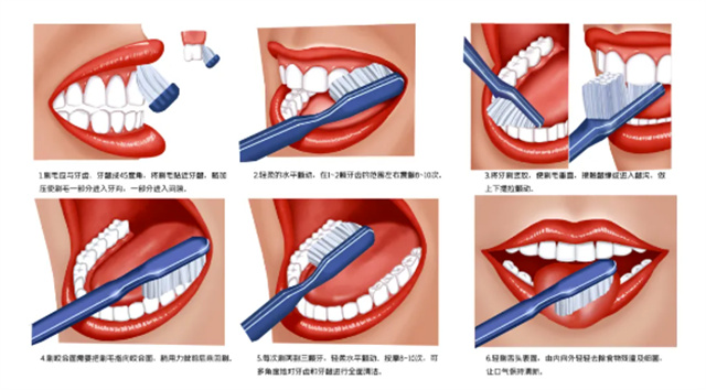我们可以采取“三三原则”,即每天刷牙3次,每次刷牙3分钟,每3个月更换一次牙刷。当然,还要记得用正确的方式刷牙,可以参考巴氏刷牙法:
