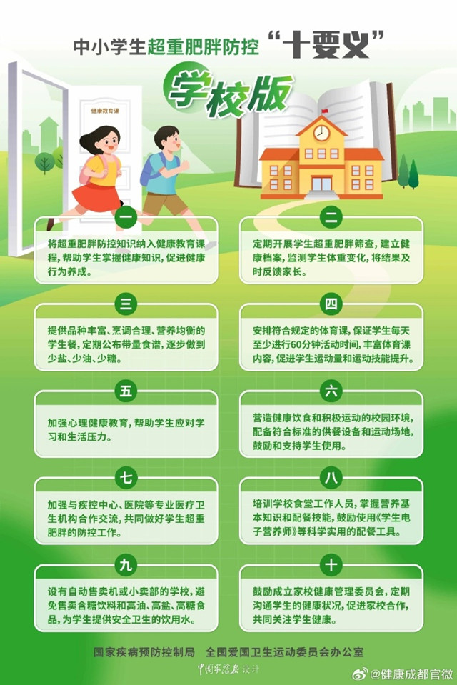 中小学生超重肥胖防控“十要义”海报(学校版)
