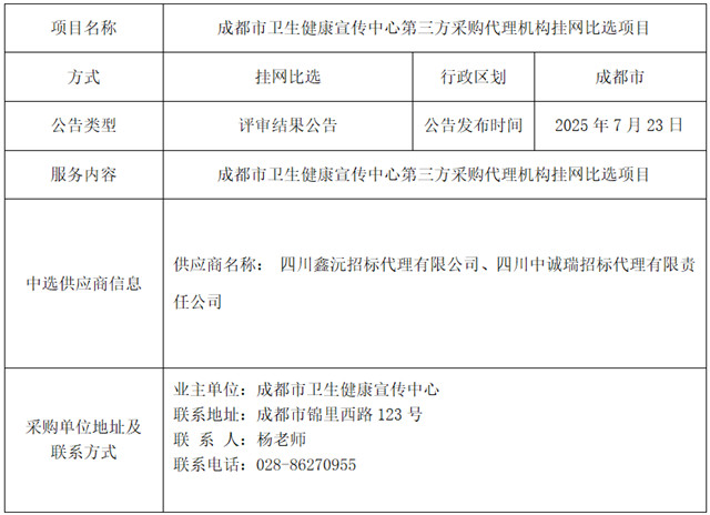 挂网比选评审结果公告