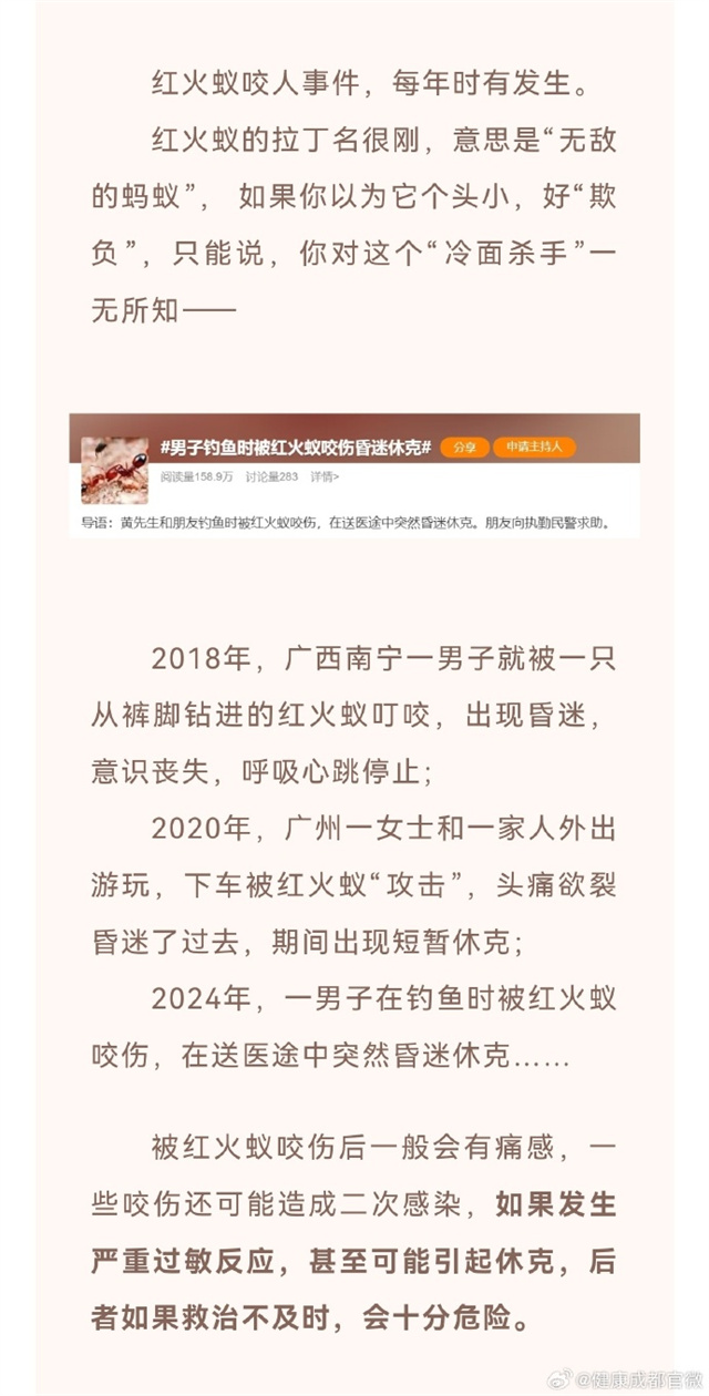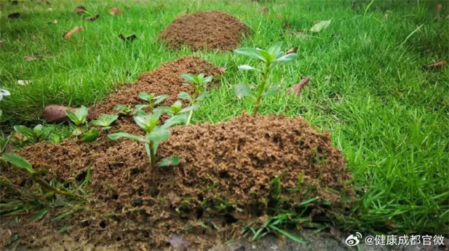 红火蚁咬人事件,每年时有发生。近期出门游玩时,如果在人行道边绿化带、公共绿地、河堤……看到形似这样的小土堆↓↓千万远离!很可能是红火蚁的巢穴!