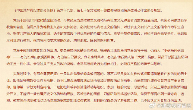 关于党员信仰宗教、搞迷信活动的处分规定