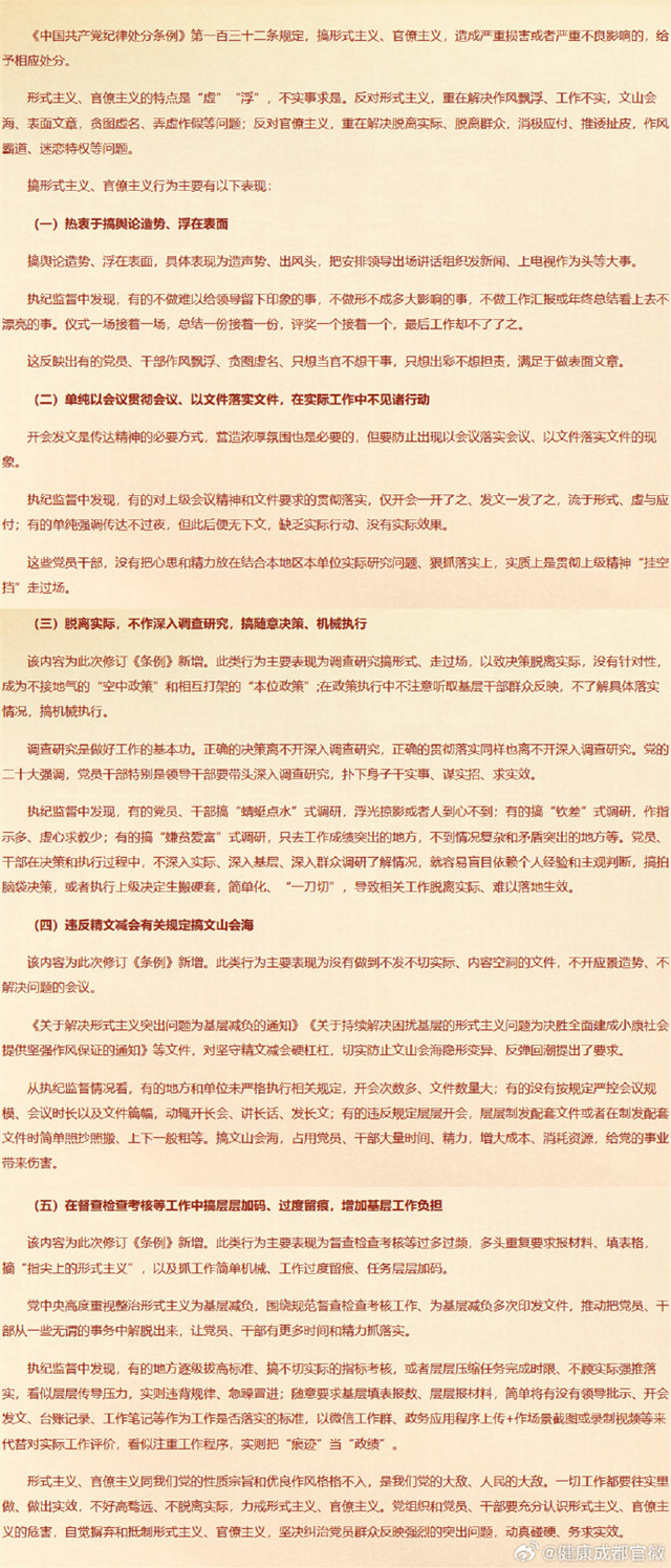 搞形式主义、官僚主义行为及其处分规定